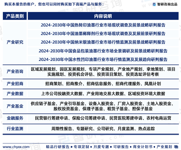 内容丰富、数据翔实、亮点纷呈。是智研咨询重要研究成果,是智研咨询引领行业变革、寄情行业、践行使命的有力体现,更是水性油墨领域从业者把脉行业不可或缺的重要工具。智研咨询已形成一套完整、立体的智库体系,多年来服务政府、企业、金融机构等,提供科技、咨询、教育、生态、资本等服务。