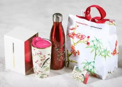 去年6月,香港星巴克和时装设计师Vivienne Tam合作推出联名限量系列,将Vivienne Tam设计的Bird and Flora经典图案设为蓝本,在产品的包装印上以水墨画形式打造的鸟雀、竹子树、梅花等具有东方特色的图案。